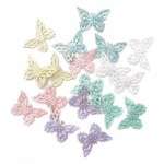 Ażurowe motylki samoprzylepne z filcu, pokryte opalizująca powłoką, w pastelowych odcieniach.Idealnie nadają się do ozdabiania okolicznościowych projektów kreatywnych typu scrapbooking (albumy, pudełka, pakowane prezentów) czy home decor oraz wielu innych.
