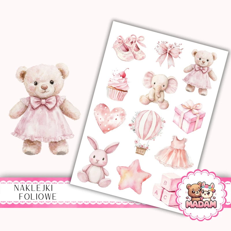 Naklejki foliowe 13x19 Baby Shower Dziewczynka MaDam Creative