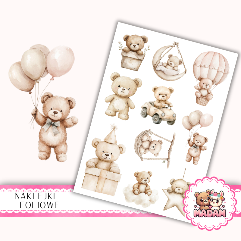 Naklejki foliowe 13x19 Beżowe Misie MaDam Creative