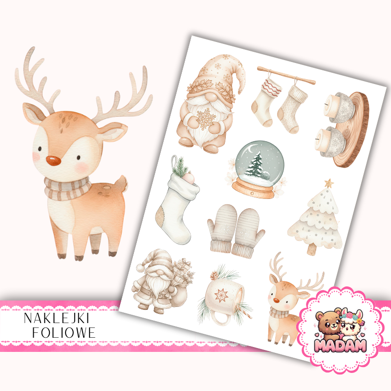 Naklejki foliowe 13x19 Beżowe Święta MaDam Creative