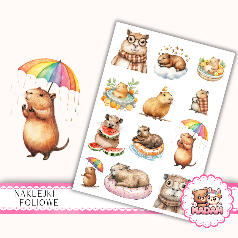 Naklejki foliowe 13x19 Kawaii Kapibara MaDam Creative