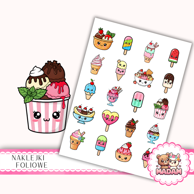 Naklejki foliowe 13x19 Kawaii Lody MaDam Creative