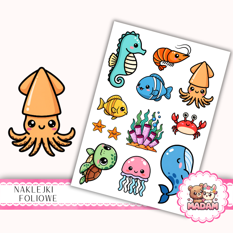 Naklejki foliowe 13x19 Kawaii Podmorski Świat MaDam Creative