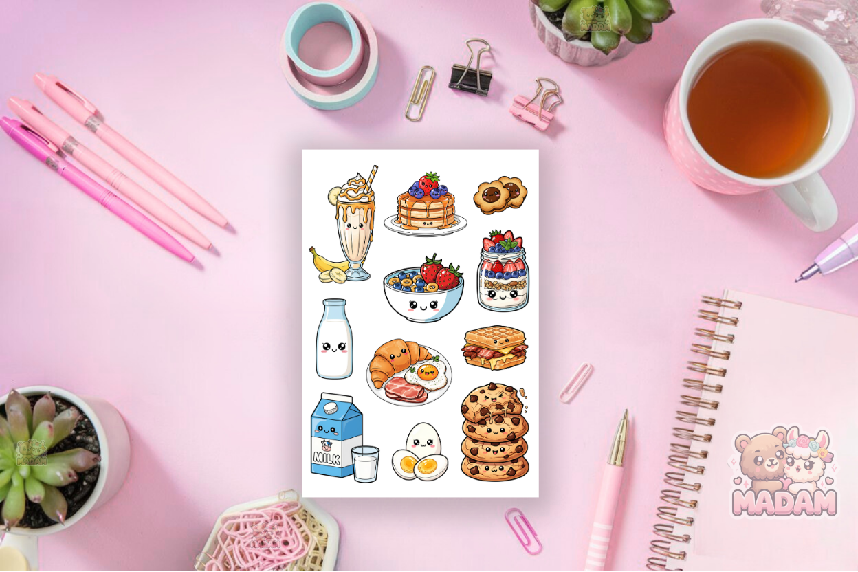 Naklejki foliowe 13x19 Kawaii Urocze Śniadanko MaDam Creative