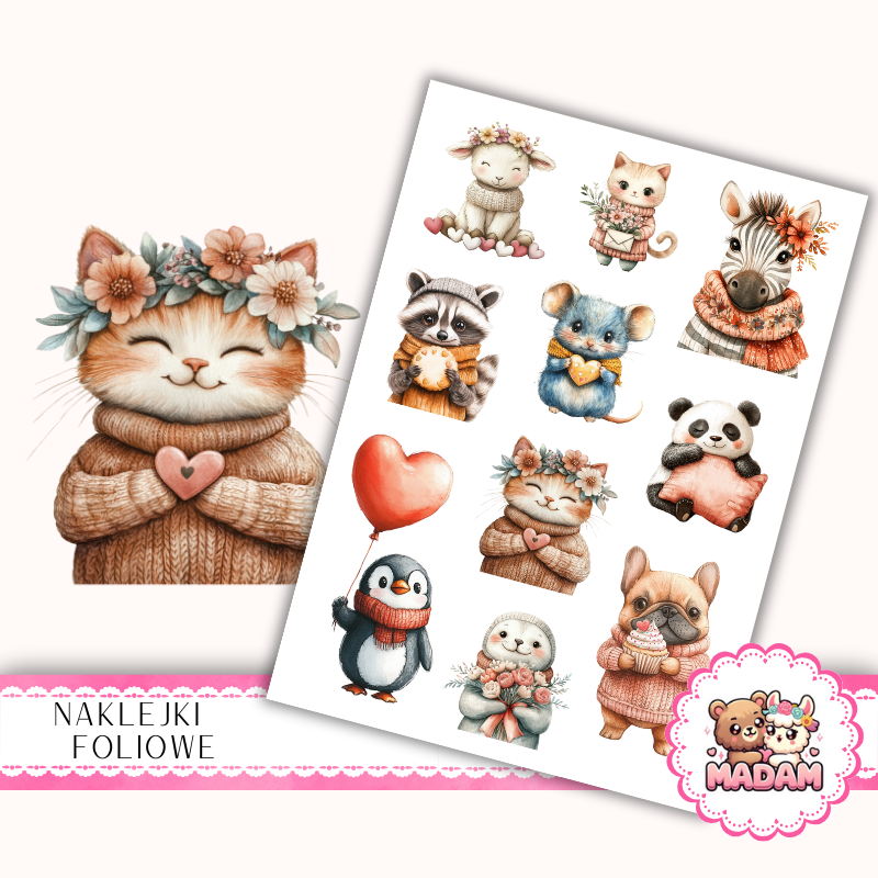 Naklejki foliowe 13x19 Kawaii Zwierzątka Kubraczki na Drutach MaDam Creative