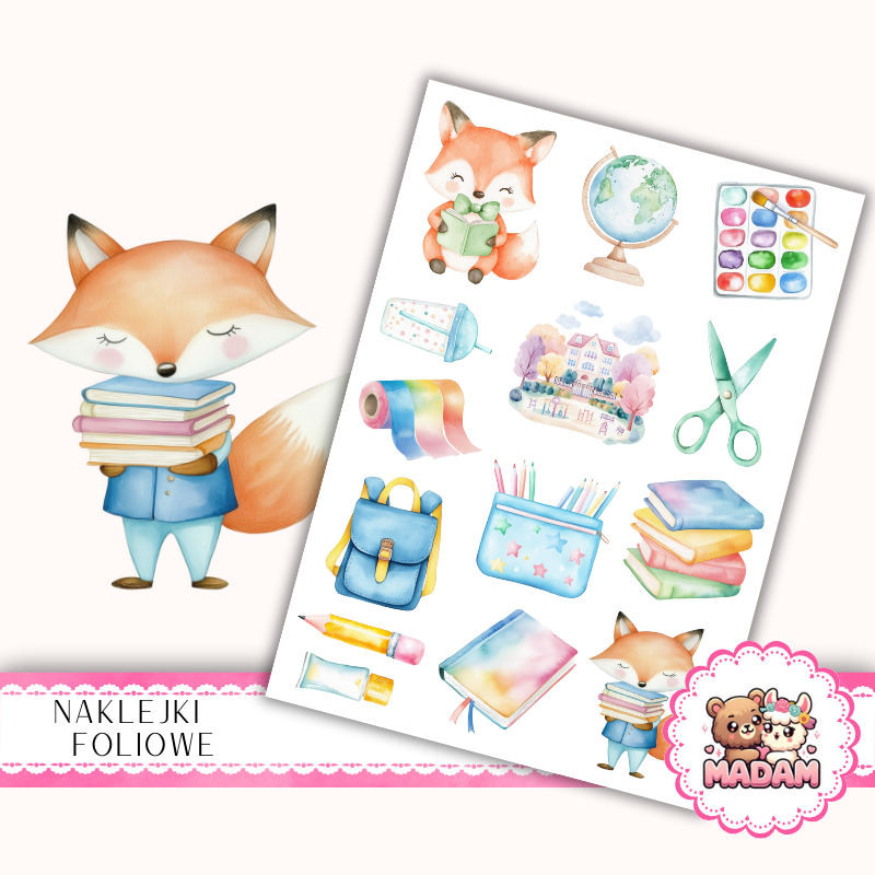 Naklejki foliowe 13x19 Lisek w Nowej Szkole MaDam Creative