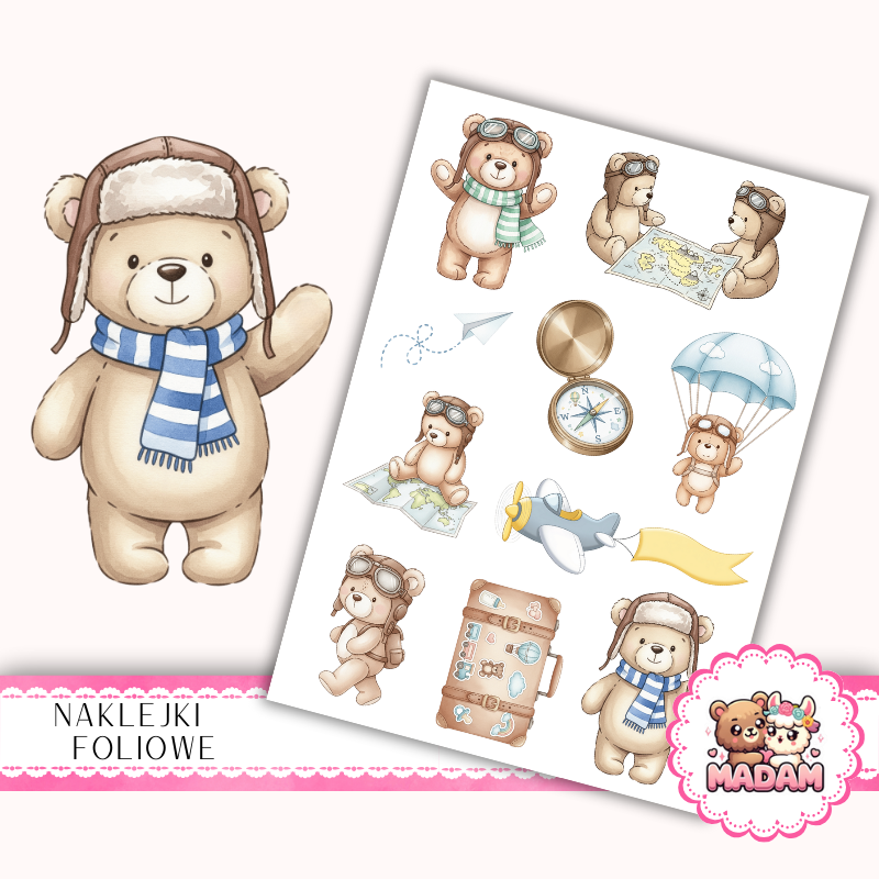 Naklejki foliowe 13x19 Miś Pilot vol.2 MaDam Creative