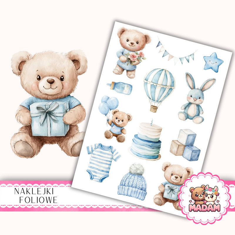 Naklejki foliowe 13x19 Niebieski Miś MaDam Creative