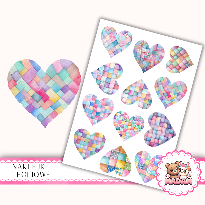 Naklejki foliowe 13x19 Pastelowe Serca Patchwork MaDam Creative