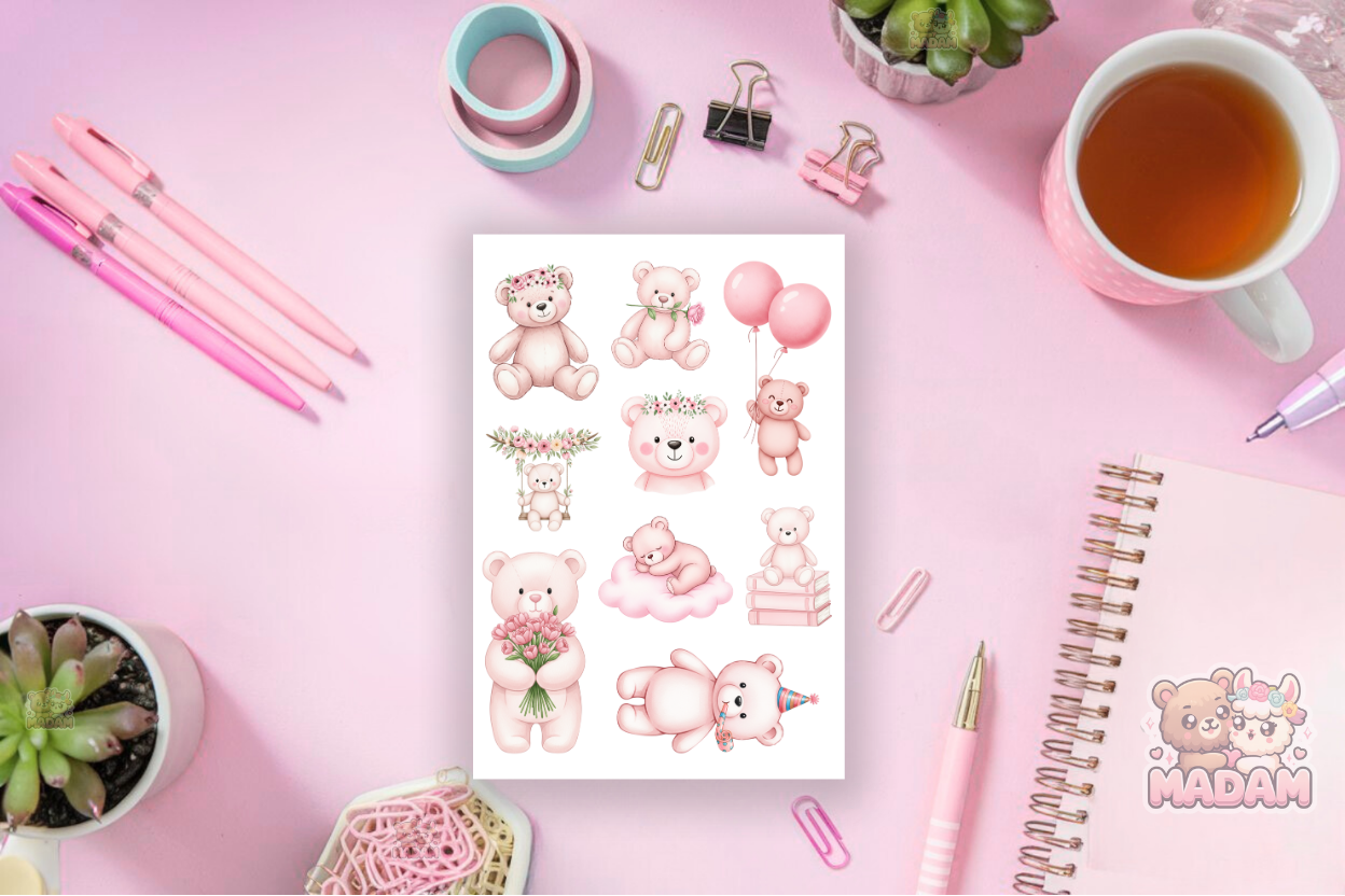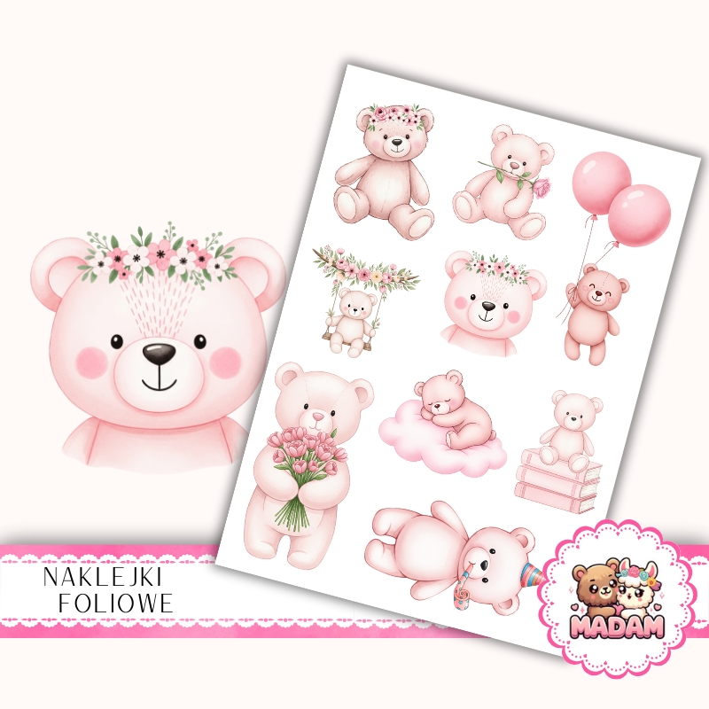 Naklejki foliowe 13x19 Różowy Miś MaDam Creative
