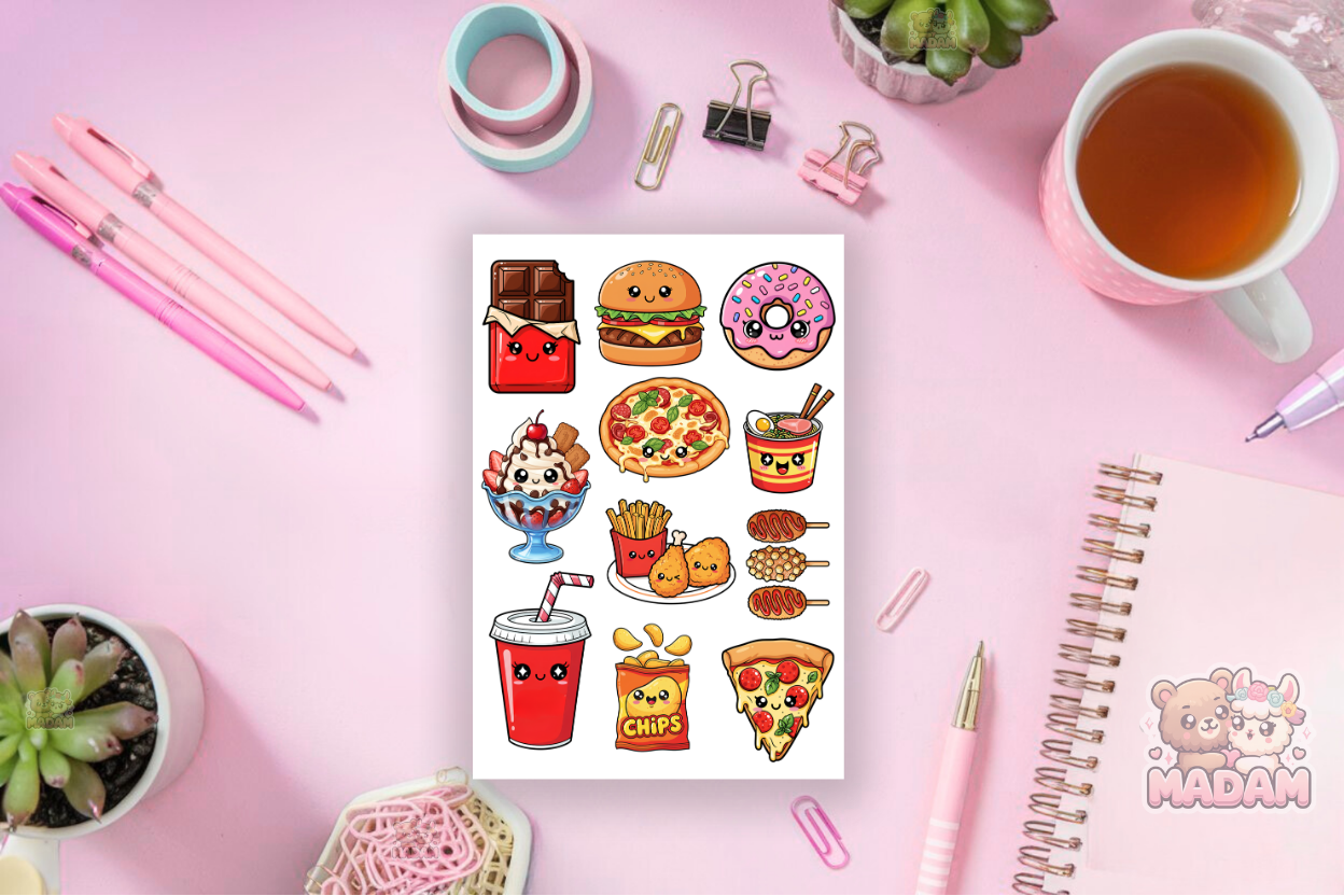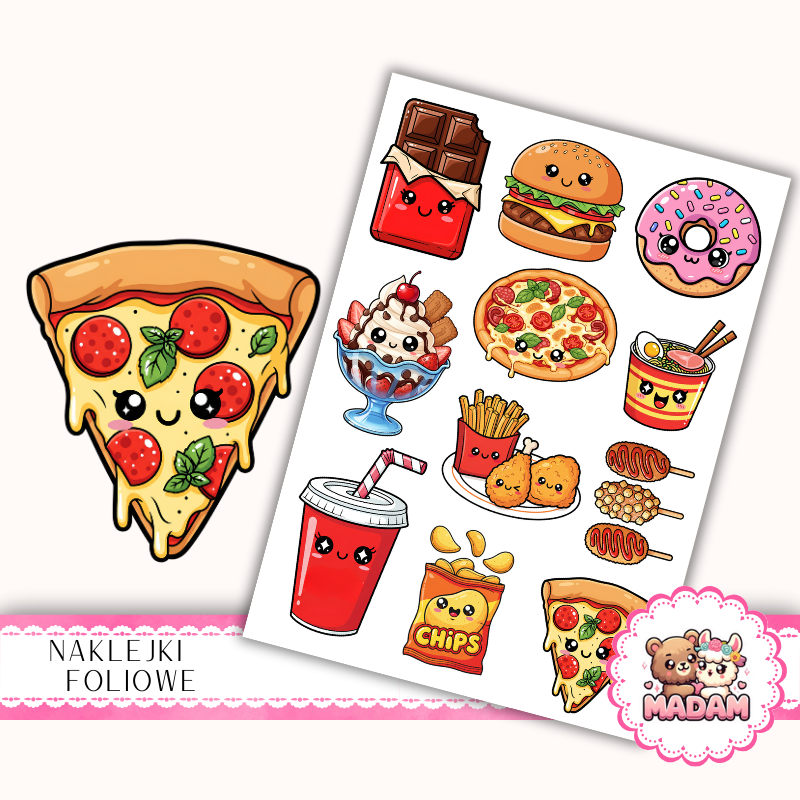 Naklejki foliowe 13x19 Urocze Kawaii Fast Food MaDam Creative
