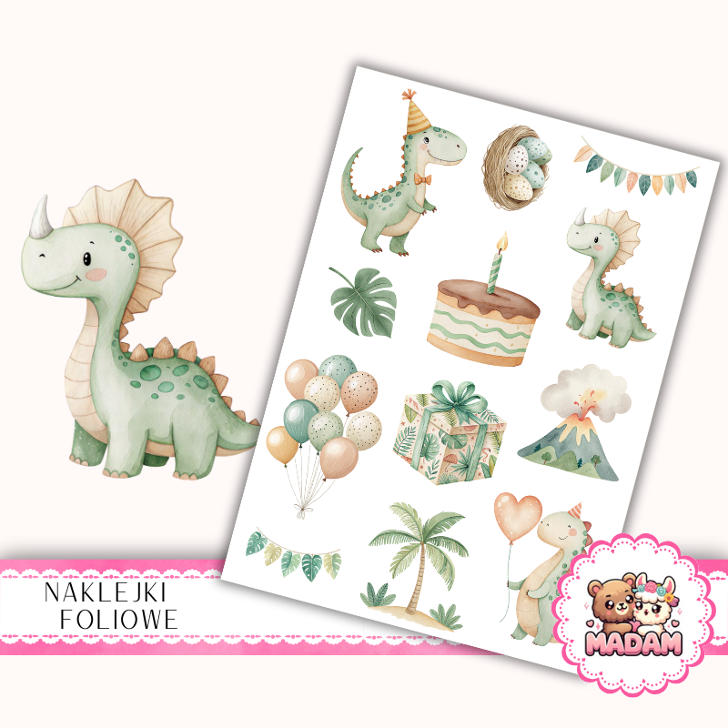 Naklejki foliowe 13x19 Urodziny Dinozaura MaDam Creative