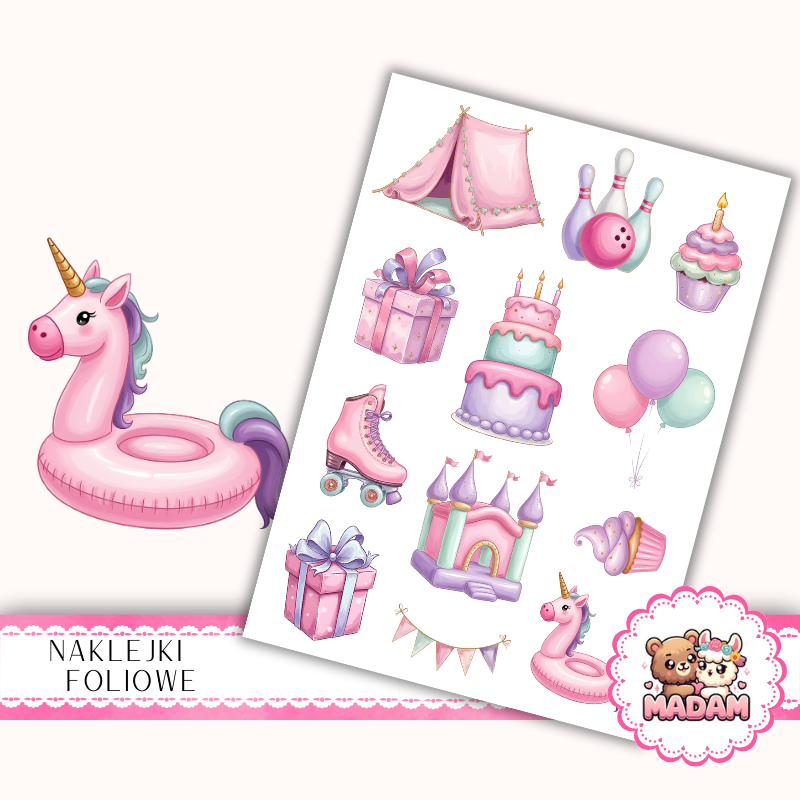 Naklejki foliowe 13x19 Urodziny Dziewczynki MaDam Creative