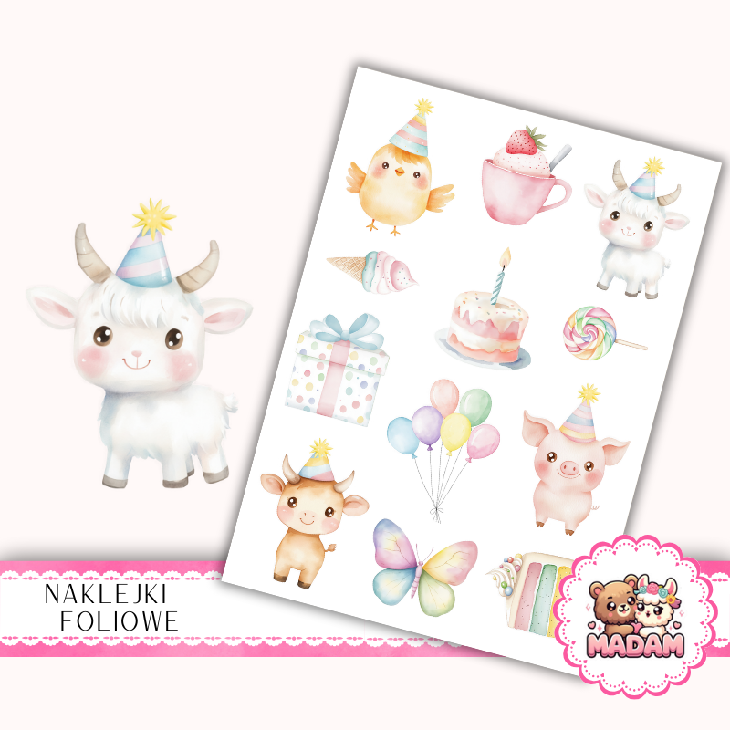 Naklejki foliowe 13x19 Urodziny na Farmie MaDam Creative