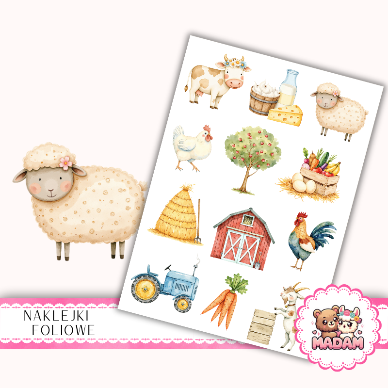 Naklejki foliowe 13x19 Wesołe Zwierzątka z Farmy MaDam Creative