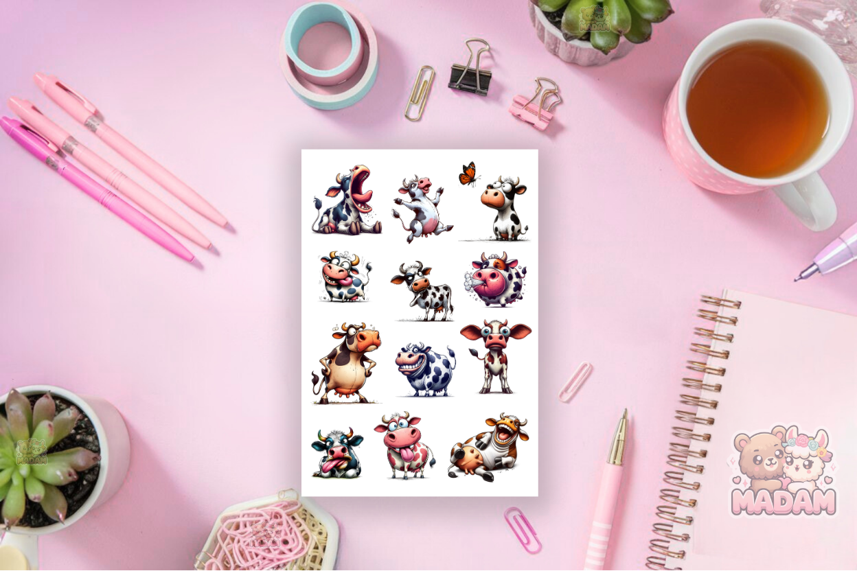 Naklejki foliowe 13x19 Zabawne Szkicowe Krówki MaDam Creative