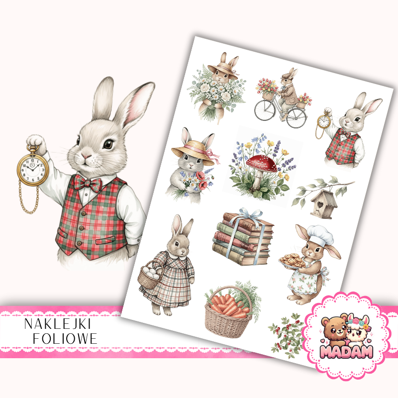Naklejki foliowe 13x19 Zajączek Retro MaDam Creative