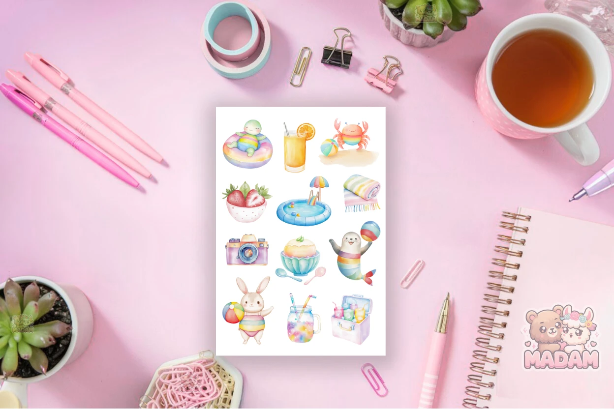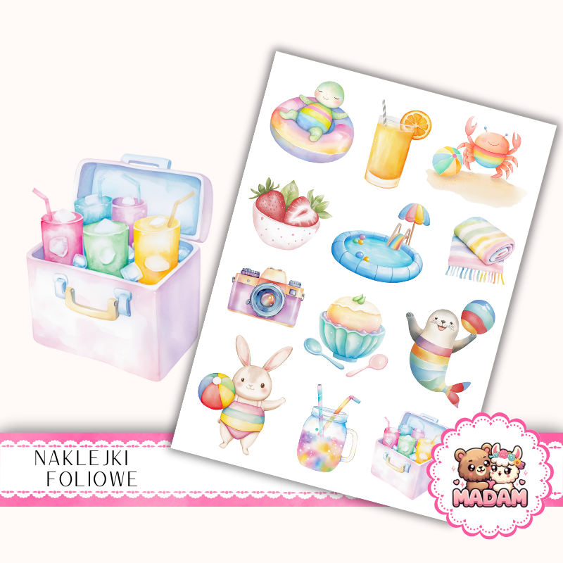 Naklejki foliowe 13x19 Zwierzaki na Basenowym Party MaDam Creative