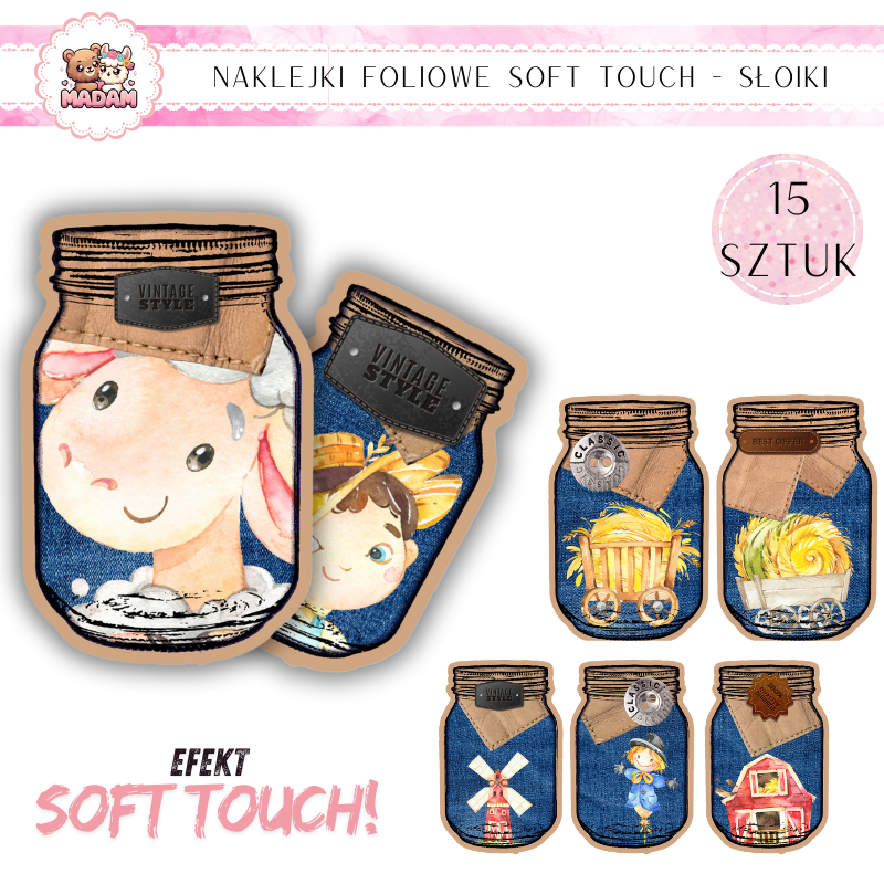 Naklejki foliowe Słoiki Soft Touch Farma, MaDam