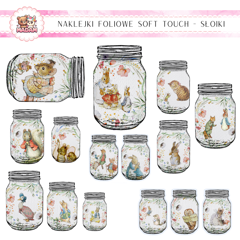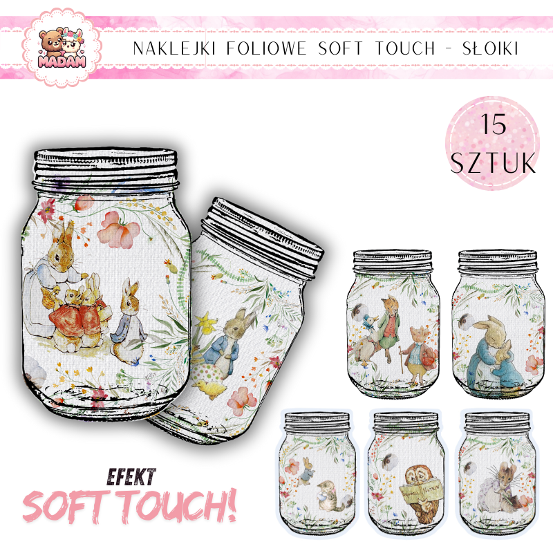 Naklejki foliowe Słoiki Soft Touch Królik, MaDam