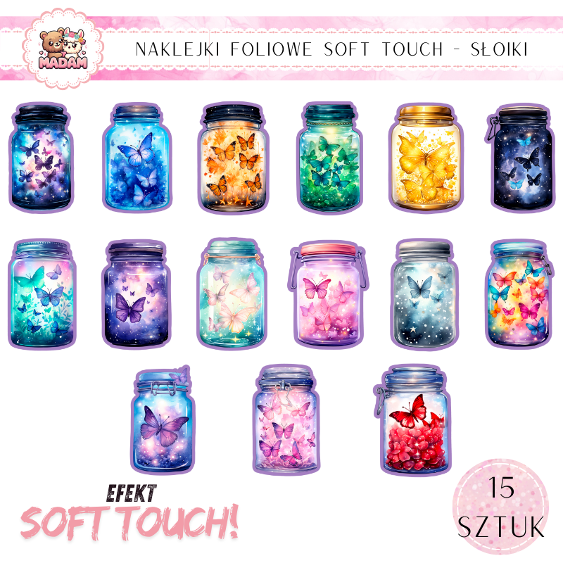 Naklejki foliowe Słoiki Soft Touch Magiczne Motyle, MaDam
