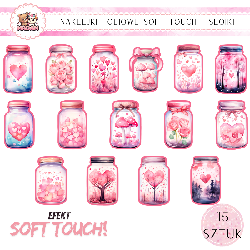 Naklejki foliowe Słoiki Soft Touch Różowe Love, MaDam