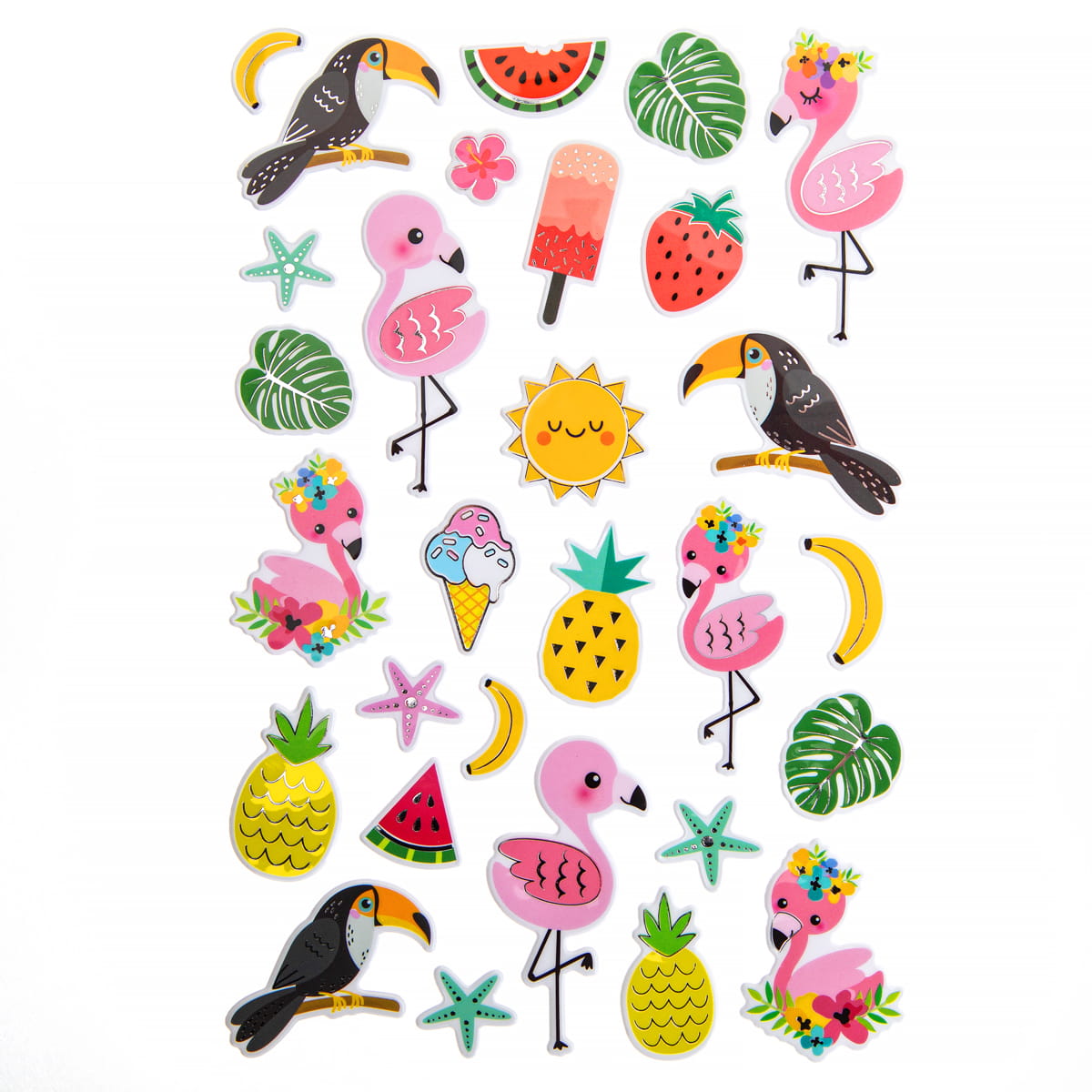 Kolorowe naklejki 3D z tropikalnymi motywami, to wyjątkowy produkt, który pobudzi dziecięcą wyobraźnię i wzbogaci wiele projektów kreatywnych.