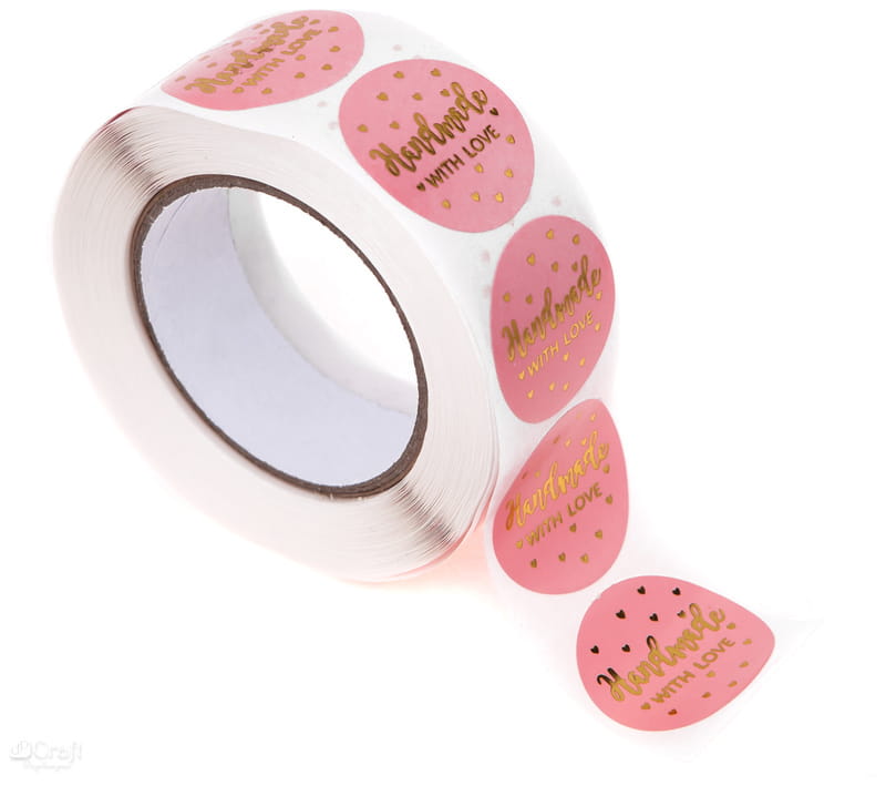 Naklejki na rolce - Handmade With Love, Różowe, 500 szt., Dp Craft