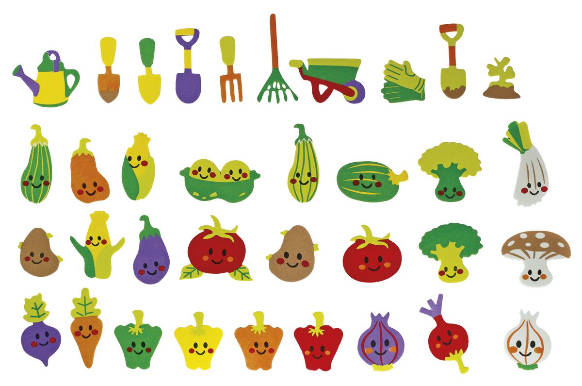 Naklejki piankowe, wzór: warzywa mix 22 wzorów: arbuz, kukurydza, cebula, dynia, rzodkiewka, bakłażan, brokuł, pomidor, cukinia, ziemniak, papryka, por, marchew, groszek, grzyb, sadzonka, konewka, grabki, łopatki, rękawice ogrodowe. 108 sztuk.