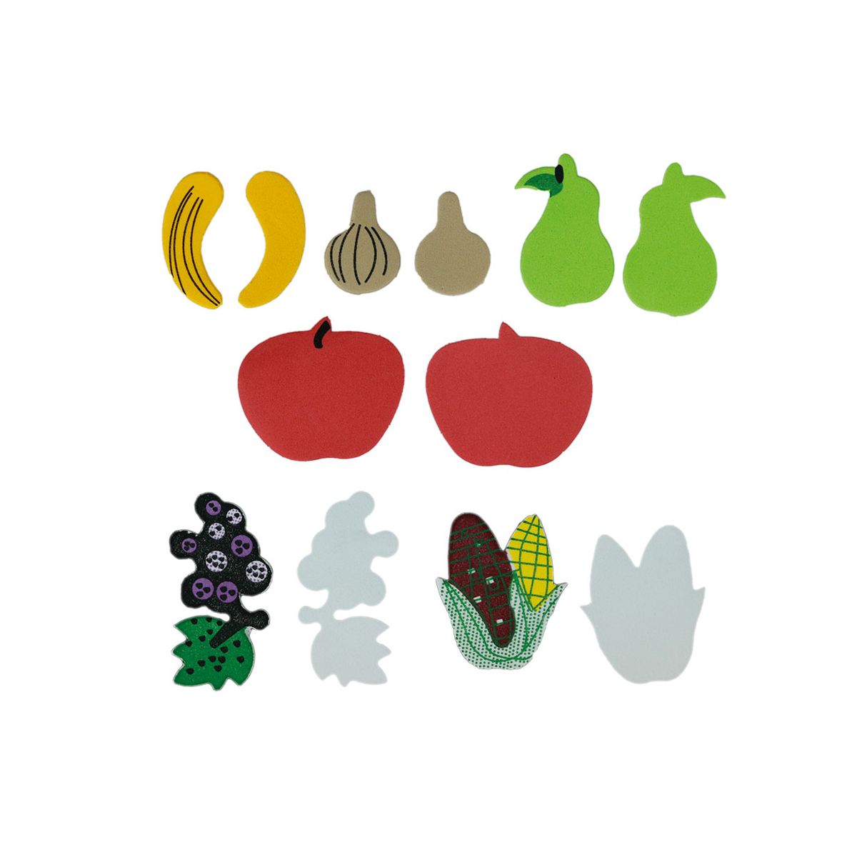 Naklejki piankowe. Kształty: owoce, warzywa, mix kolorów i wymiarów. 51 sztuk.