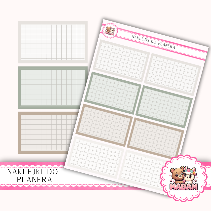 Naklejki planerowe karteczki w kratkę MaDam Creative to idealny sposób na tworzenie notatek, podsumowań i zapisków w estetycznej formie. Dzięki nim Twój planer, kalendarz lub Bullet Journal zyska przejrzystość i porządek, a każda strona stanie się bardziej funkcjonalna.