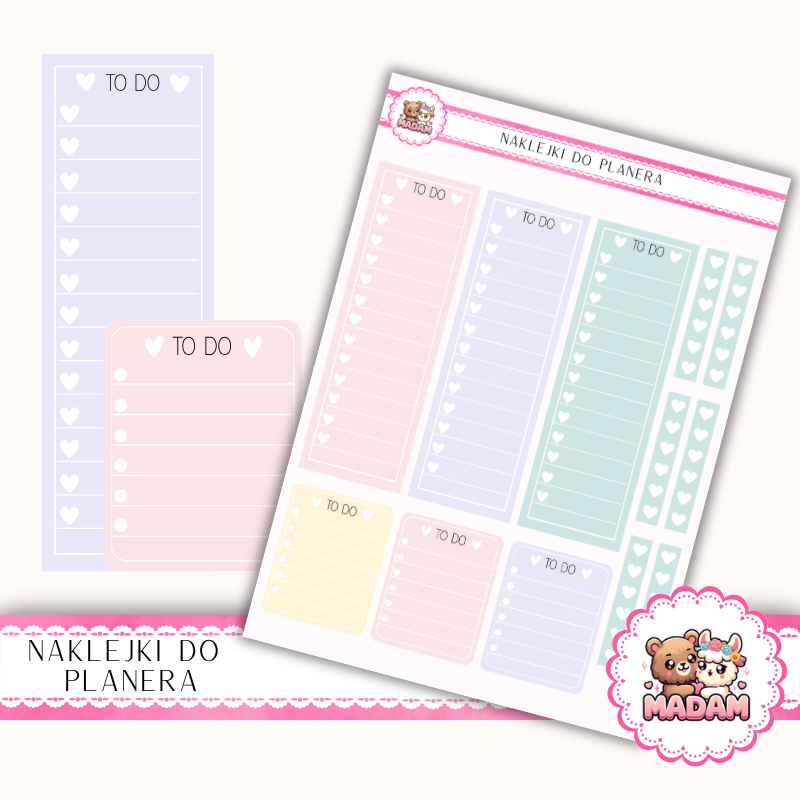 Naklejki planerowe listy To Do serduszka pastelowe Pastel Love 13x18 do planera MaDam Creative