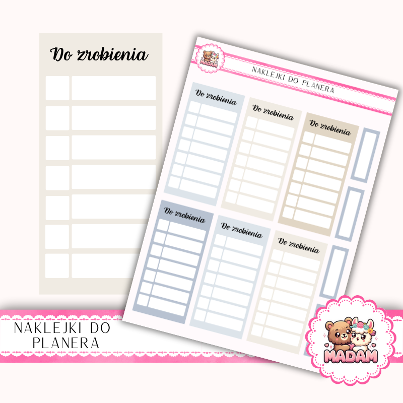 Naklejki planerowe listy zadań MaDam Creative to idealne narzędzie do tworzenia przejrzystych i estetycznych list to-do. Ułatwiają codzienną organizację, pozwalają śledzić postępy i planować kolejne dni z przyjemnością.