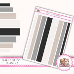 Arkusze w formacie 13x18 cm zawierają różnej długości paski, zaprojektowane z myślą o planerach i kalendarzach. Dostępne są w wariantach kolorystycznych – pastelowych, neutralnych, klasycznych lub sezonowych. Papierowy, samoprzylepny materiał sprawia, że paski są łatwe do aplikacji i delikatne w wyglądzie.