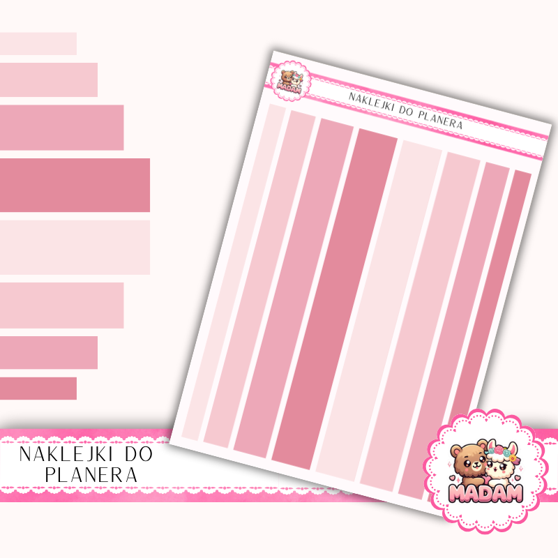 Naklejki planerowe paski blush pink gradient 13x18 do planera Bullet Journal MaDam Creative