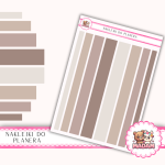 Arkusze w formacie 13x18 cm zawierają różnej długości paski, zaprojektowane z myślą o planerach i kalendarzach. Dostępne są w wariantach kolorystycznych mocha rose – pastelowych, neutralnych, klasycznych lub sezonowych. Papierowy, samoprzylepny materiał sprawia, że paski są łatwe do aplikacji i delikatne w wyglądzie.