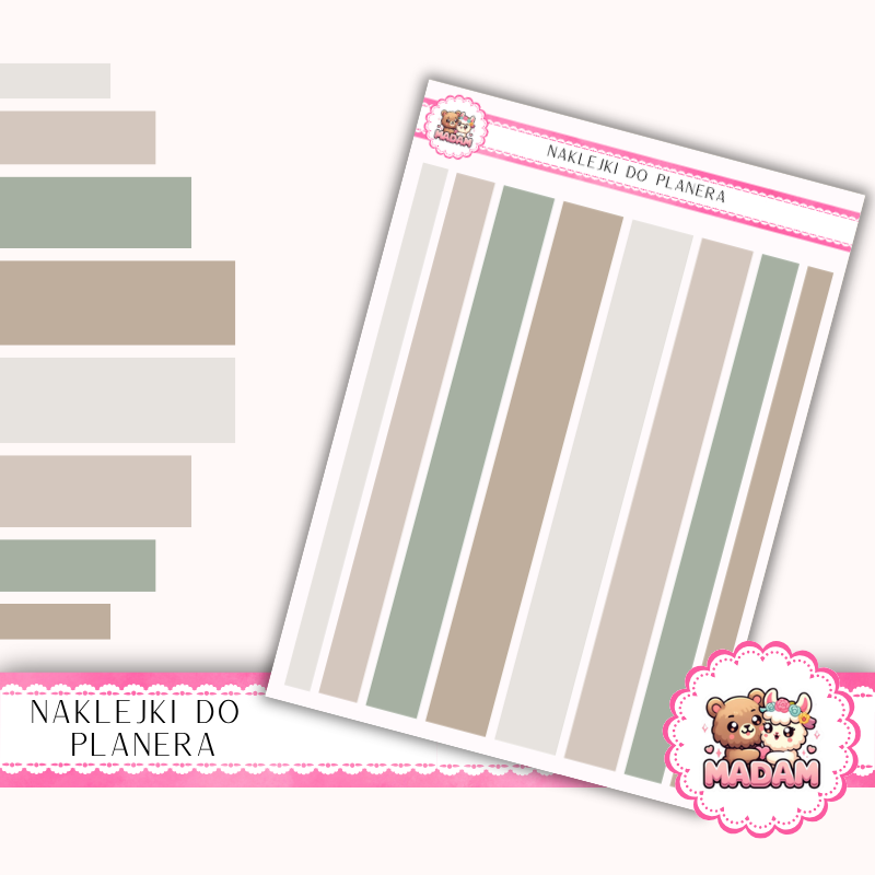 Naklejki planerowe paski MaDam Creative to niezbędny element każdego planera i Bullet Journala. Ułatwiają organizację, dzielenie stron na sekcje oraz dodawanie estetycznych akcentów do codziennego planowania. Dzięki nim stworzysz czytelny, uporządkowany i pięknie wyglądający układ notatek.