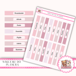 Każdy arkusz w formacie 13x18 cm zawiera paski o długości dopasowanej do układów tygodniowych w planerach. Naklejki dostępne są w wariantach – pastelowych, neutralnych, klasycznych lub sezonowych. Papierowy, samoprzylepny materiał sprawia, że paski są łatwe w aplikacji i delikatne w wyglądzie, nie pogrubiając kartek.