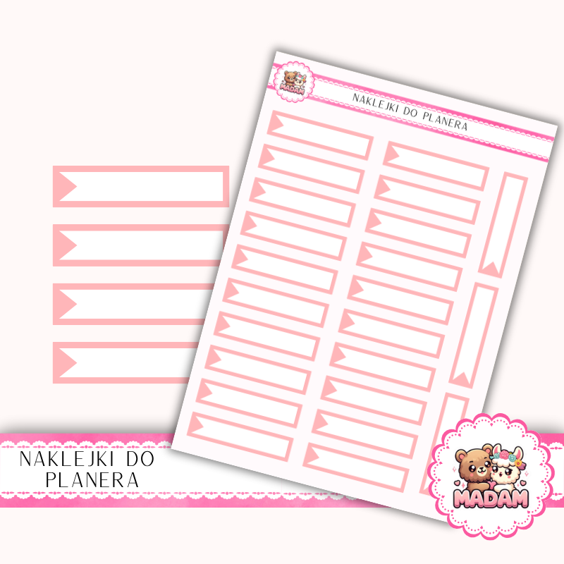 Naklejki planerowe Paski z Flagą MaDam Creative to idealny sposób na wyróżnianie ważnych zadań, wydarzeń i celów w Twoim planerze. Klasyczny kształt z delikatnym zakończeniem w formie flagi dodaje estetyki każdej stronie i pomaga utrzymać porządek w notatkach.