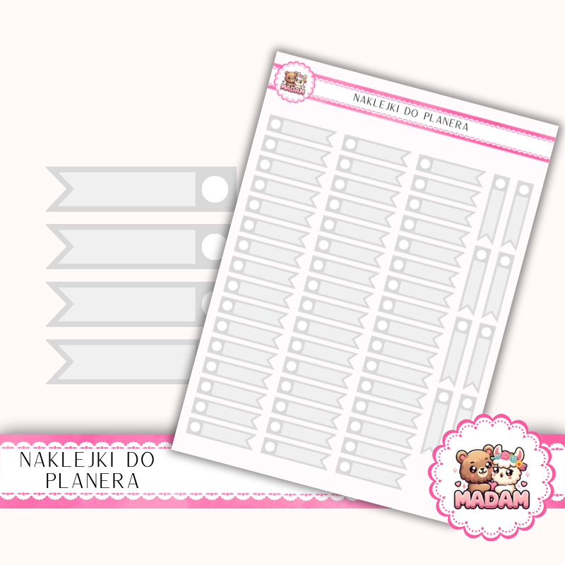 Naklejki planerowe Paski z Kółkiem MaDam Creative to estetyczne znaczniki, które idealnie sprawdzają się jako element organizacji zadań. Delikatne kółko na końcu paska może posłużyć do odhaczania, oznaczania statusu lub jako punkt dekoracyjny.
