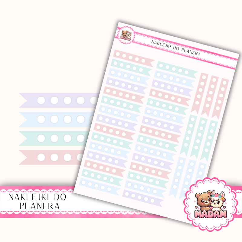 Naklejki planerowe Paski z Kropkami Pastelowy Mix 13x18 do planera Bullet Journal MaDam Creative