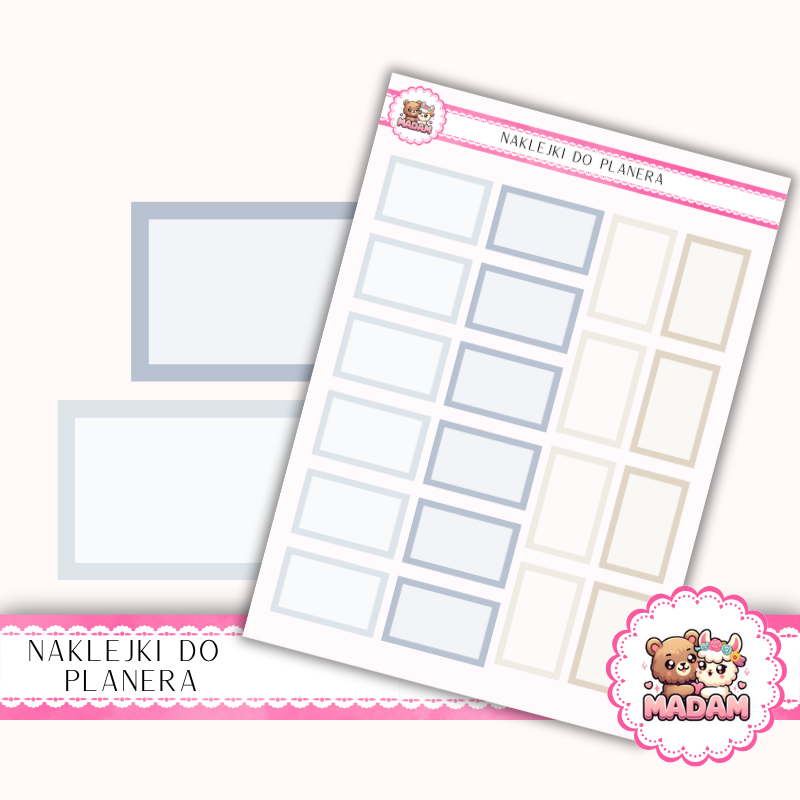 Naklejki planerowe pola prostokątne MaDam Creative to funkcjonalny dodatek do planera lub kalendarza, który ułatwia tworzenie czytelnych układów i estetycznych notatek. Idealne dla osób, które lubią mieć wszystko uporządkowane i zaplanowane w elegancki sposób.