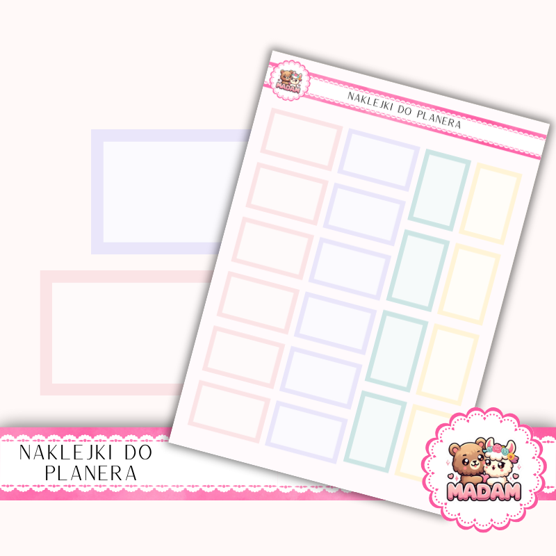 Naklejki planerowe pola prostokątne pastelowe Pastel Love 13x18 do planera MaDam Creative
