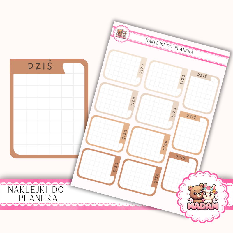 Naklejki planerowe ramki DZIŚ MaDam Creative to praktyczny sposób na wyróżnienie najważniejszych zadań, spotkań i celów dnia. Pomagają utrzymać porządek w notatkach, a jednocześnie nadają Twojemu planerowi wyjątkowy wygląd i elegancki charakter.