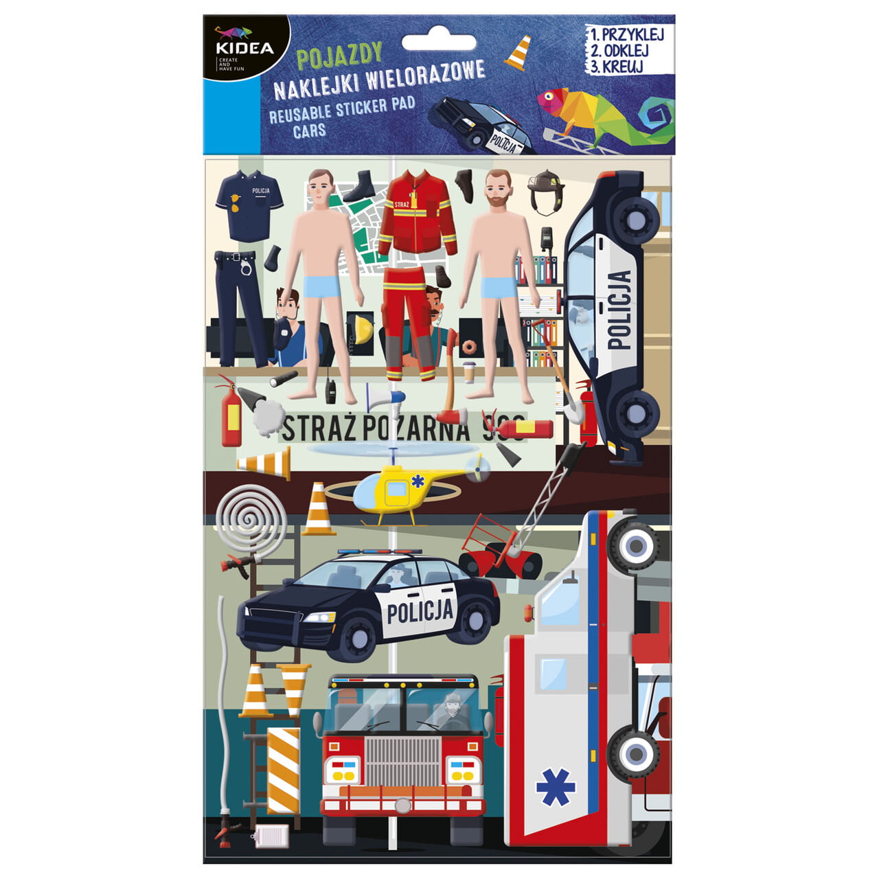 Poznaj nasze wielorazowe naklejki! Zapraszamy do świata policjantów i straży pożarnej.Ubieraj, przebieraj, dobieraj dodatki oraz twórz własne opowieści. Zestaw zawiera aż 37 naklejek 3D i 3 różne scenerie. Jaką historię dziś stworzysz? Pościg policyjny czy może gaszenie pożaru w fabryce czekolady? Jakie tło dobierzesz? Możliwości jest naprawdę wiele! Nasze wielorazowe naklejki idealnie sprawdzą się jako prezent oraz pomysł na kreatywne spędzenie czasu. Niezwykle łatwe w użyciu, dzięki czemu można kształtować wyobraźnię razem z KIDEA już od najmłodszych lat!