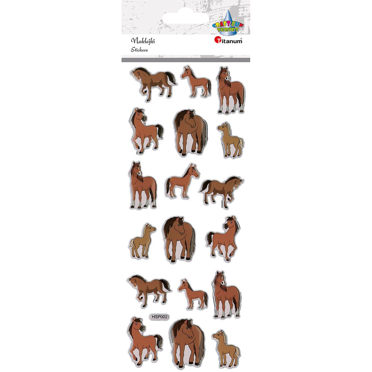 Naklejki wypukłe miękkie, wzór: konie kreskówkowe. 18 sztuk.