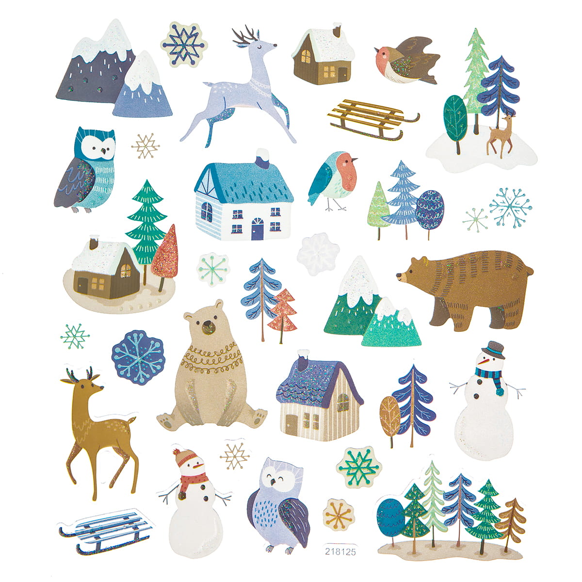 Naklejki z brokatem Zimowy pejzaż, op. 33szt., Dp Craft