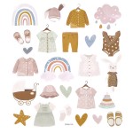 Opalizujące drobinki nadają naklejkom delikatnego połysku. Nalepki zostały zaprojektowane w stonowanych kolorach, w odcieniach brązu, różu i niebieskiego. Doskonale wpasują się w projekty craftowe oraz vintage. Idealne sprawdzą się w tworzeniu kreatywnych wyklejanek.