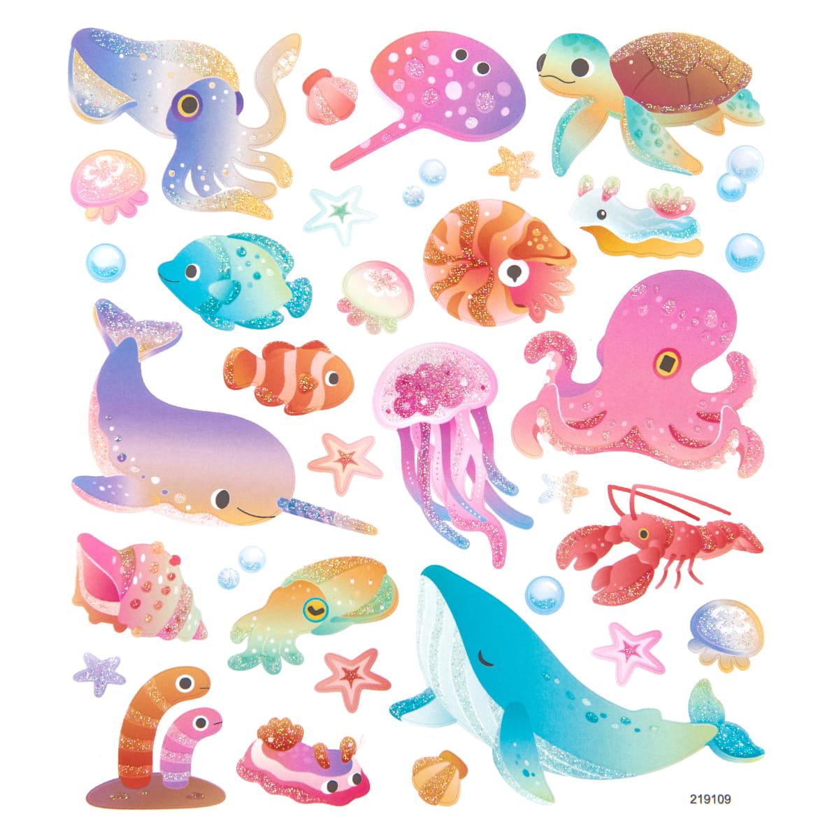 Naklejki z brokatem zwierzęta morskie 34 sztuki, Dp Craft