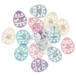 Opalizujące, ażurowe naklejki z filcu z motywem pisanek. Idealnie nadają się do ozdabiania wielkanocnych projektów typu scrapbooking (albumy, pudełka, pakowane prezentów), home decor; do aranżacji świątecznych stołów, stroików oraz wielu innych.